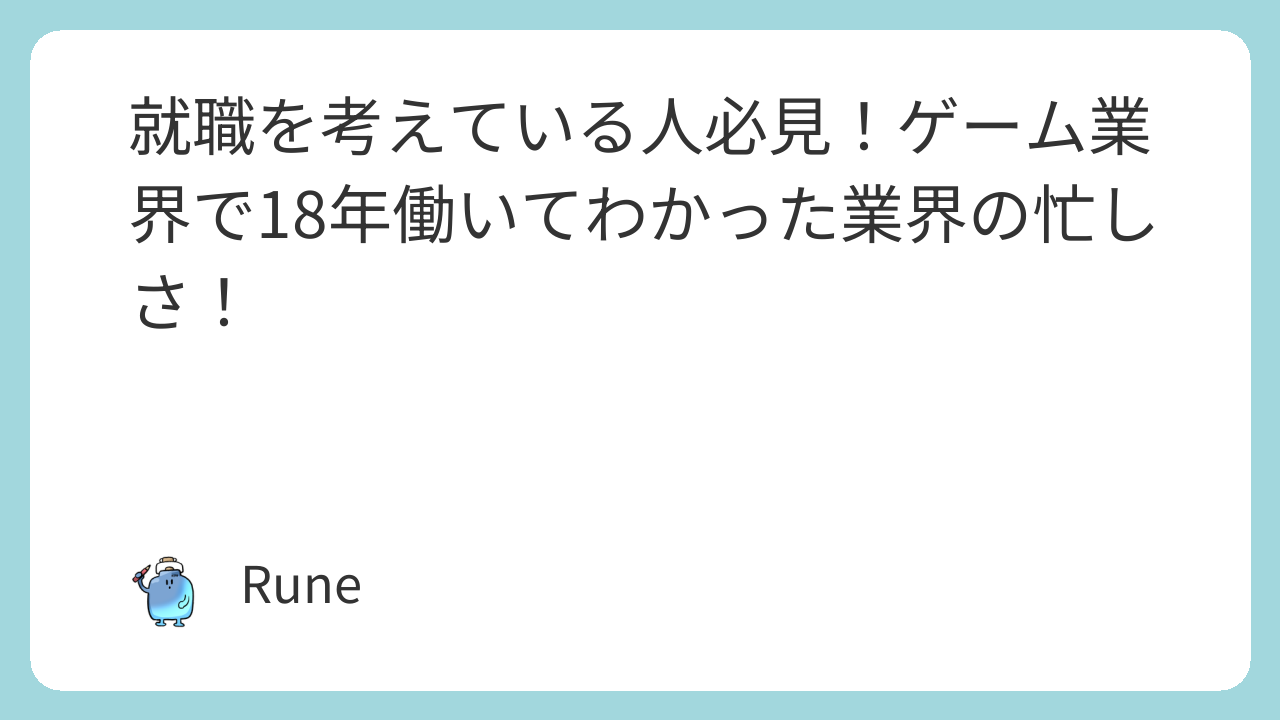 今日は私が18年間働いているゲーム業界について、実体験や周りから聞いたことを基に独断と偏見で職の「仕事忙しさ度」をお伝えしていきます。